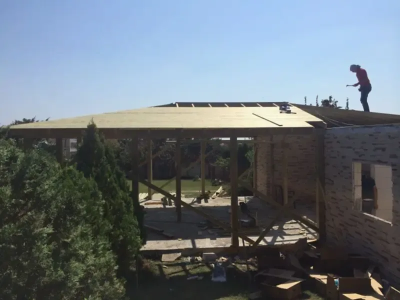 * Çift çatılı, çatı örtüsü lambri üzeri mebran+shingle izolasyonlu,